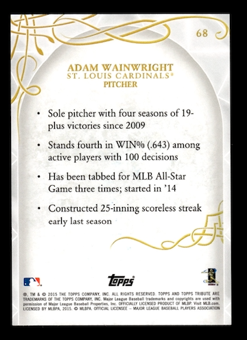 2015 Topps Tribute #68 Adam Wainwright(St. Louis Cardinals)