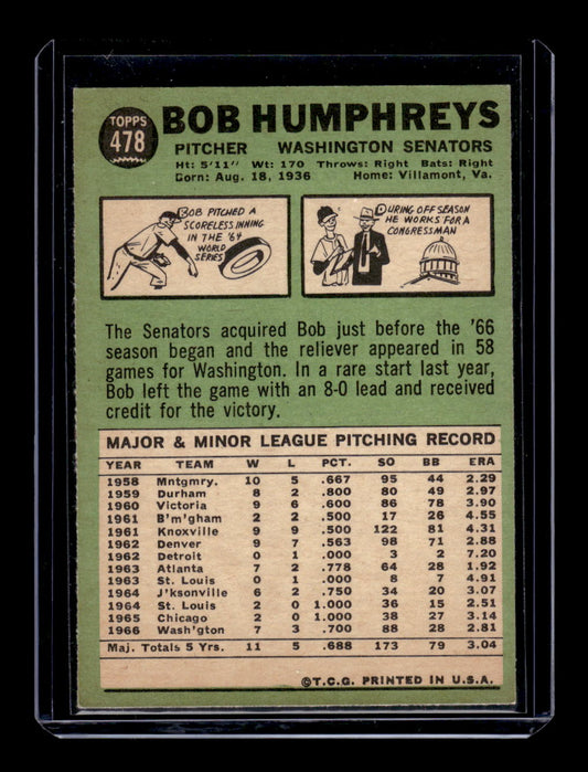 1967 Topps #478 Bob Humphreys (Washington Senators)