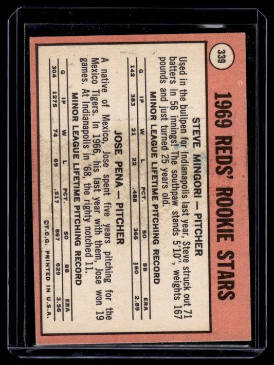 1969 Topps #339 Reds "1969 Rookie Stars" (Steve Mingori / Jose Pena) RC