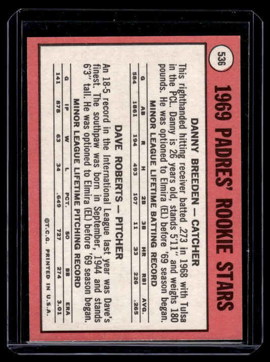 1969 Topps #536 Padres "1969 Rookie Stars" (Danny Breeden / Dave Roberts) RC