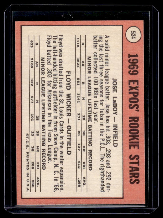1969 Topps #524 "1969 Rookie Stars" (Jose Laboy / Floyd Wicker) RC
