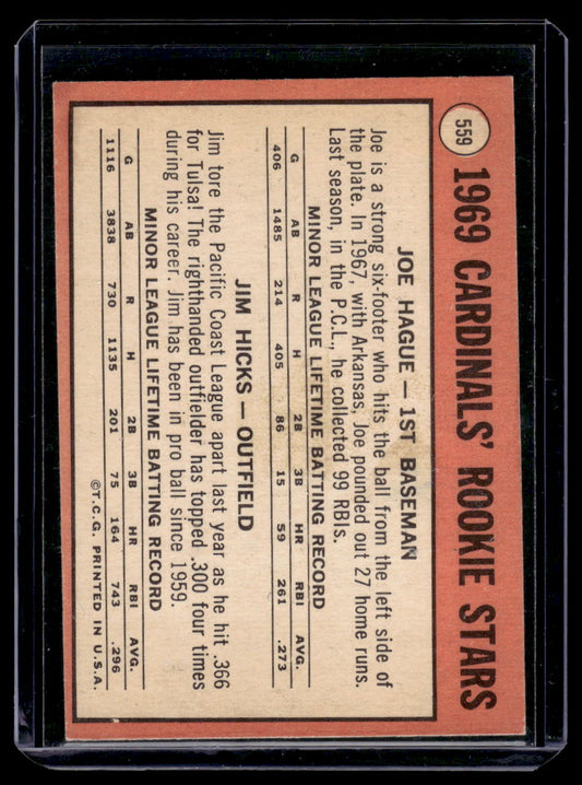 1969 Topps #559 "1969 Rookie Stars" (Joe Hague / Jim Hicks) RC