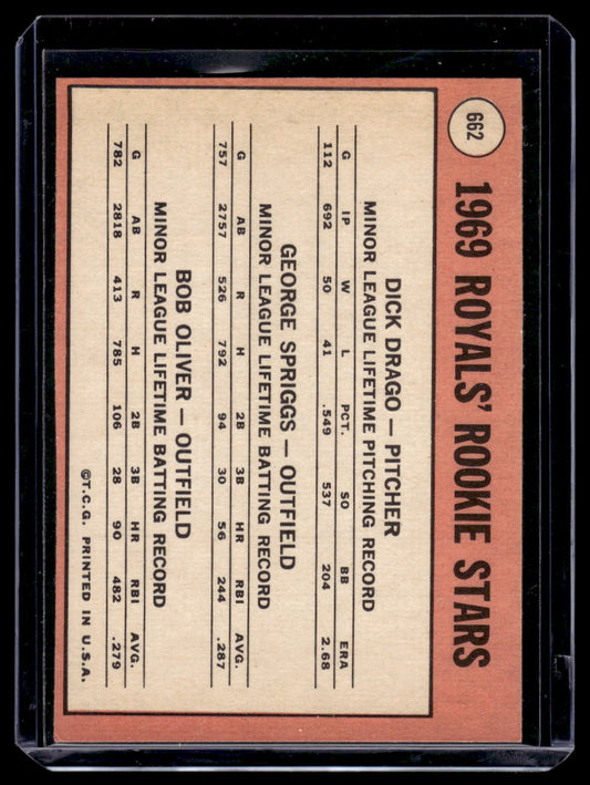 1969 Topps #662 Royals "1969 Rookie Stars" (Dick Drago / George Spriggs / Bob Oliver ) RC