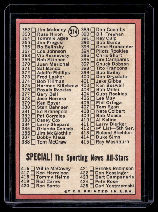 1969 Topps #57 1st Series Checklist 1-109 (Denny McLain)