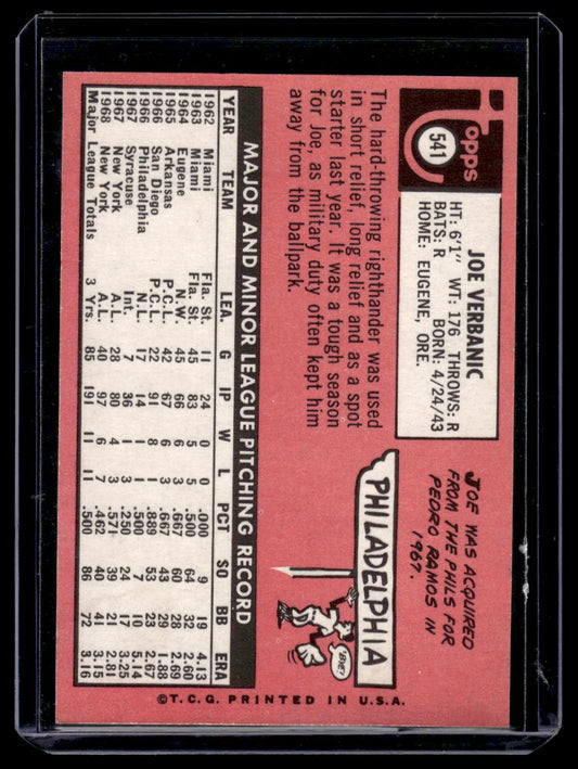 1969 Topps #541 Joe Verbanic (New York Yankees)
