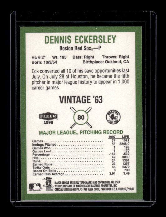 1998 Fleer Tradition Vintage '63 #80 Dennis Eckersley (Boston Red Sox)
