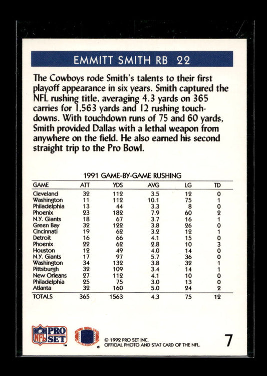 1992 Pro Set #7 Emmitt Smith LL/Rushing Leader (Dallas Cowboys)