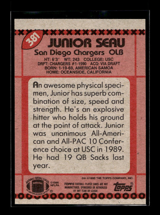 1990 Topps #381 Junior Seau Rookie (San Diego Chargers)