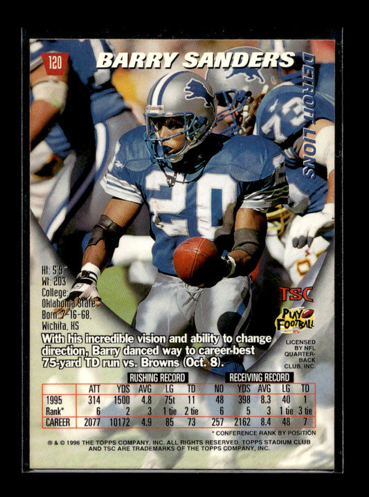 1996 Stadium Club #120 Barry Sanders (Detroit Lions)