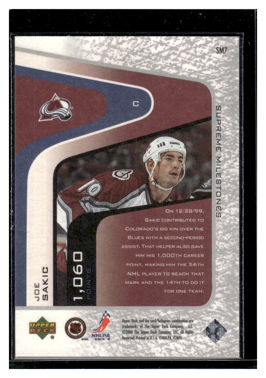 2000 Upper Deck "Legends Supreme MIlestones" #SM7 Joe Sakic (Colorado Avalanche)
