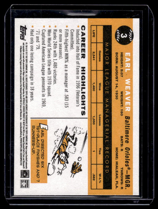 2017 Topps Archives #3 Earl Weaver (Baltimore Orioles)