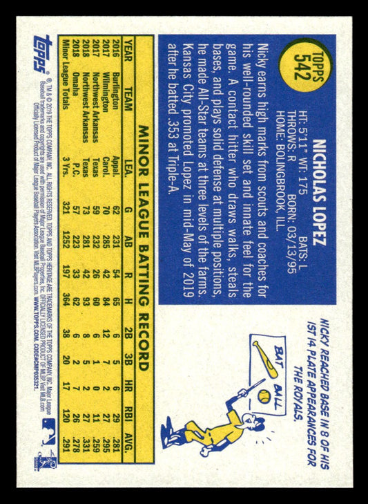 2019 Topps Heritage Rookie Card #542 Nicky Lopez (Royals)