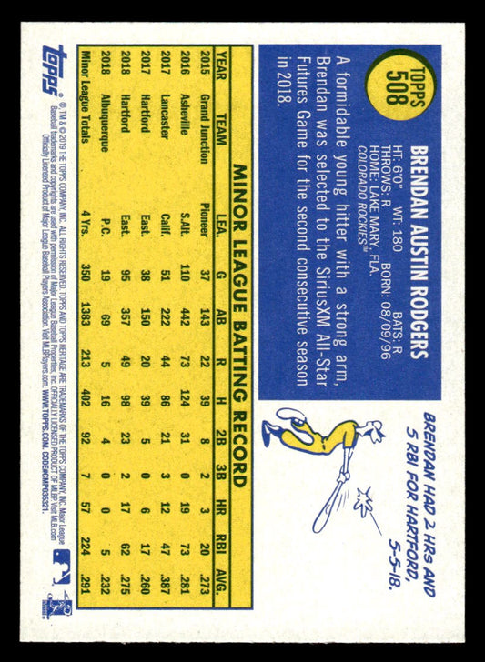 2019 Topps Heritage #508 Brendan Rodgers (Rockies)