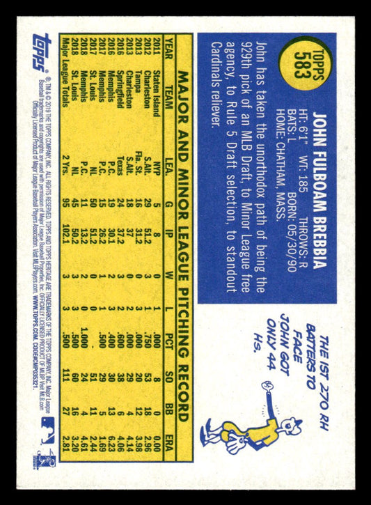 2019 Topps Heritage #583 John Brebbia (Cardinals)
