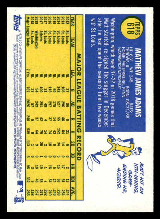 2019 Topps Heritage #618 Matt Adams (Nationals)
