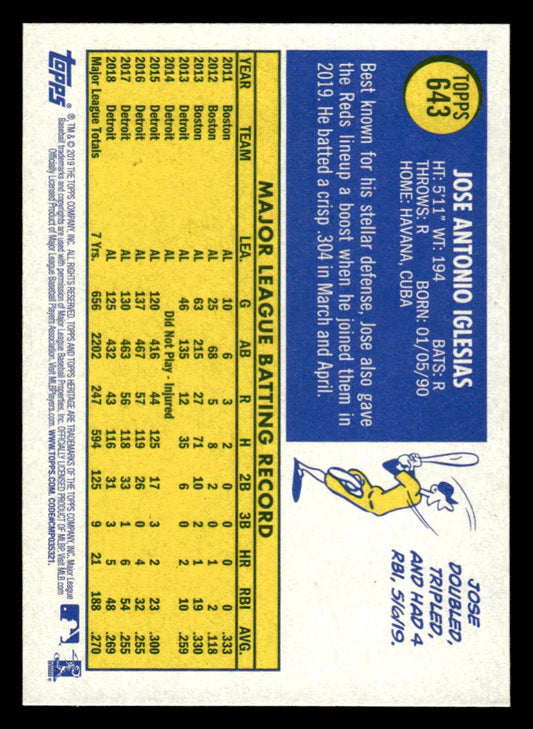 2019 Topps Heritage #643 Jose Iglesias (Reds)