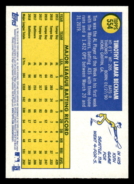2019 Topps Heritage #554 Tim Beckham (Mariners)