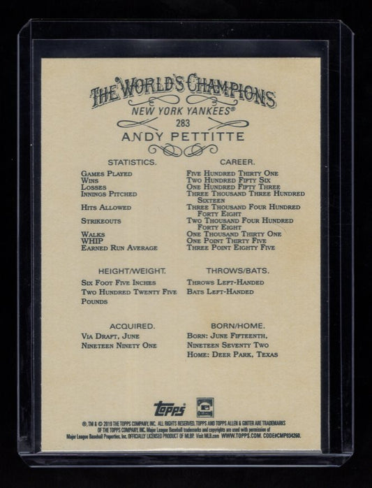 2019 Topps Allen and Ginter #283 Andy Pettitte (New York Yankees)