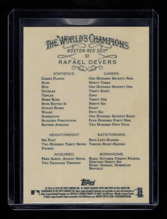 2019 Topps Allen and Ginter #97 Rafael Devers (Boston Red Sox)