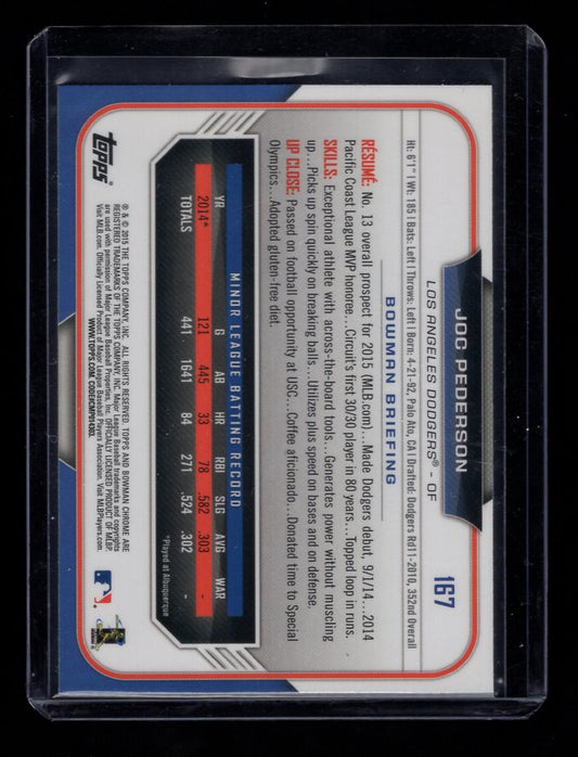 2015 Bowman Chrome #167 Joc Pederson Rookie (Los Angeles Dodgers)