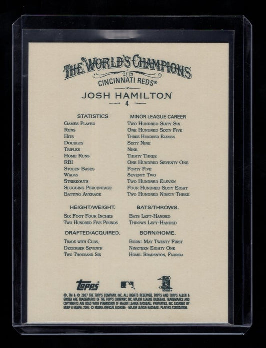2007 Topps Allen and Ginter #4 Josh Hamilton Rookie (Cincinnati Reds)