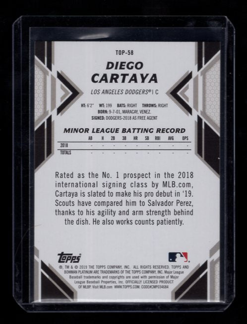 2019 Bowman Platinum Top Prospects Ice #TOP58 Diego Cartaya (Los Angeles Dodgers)