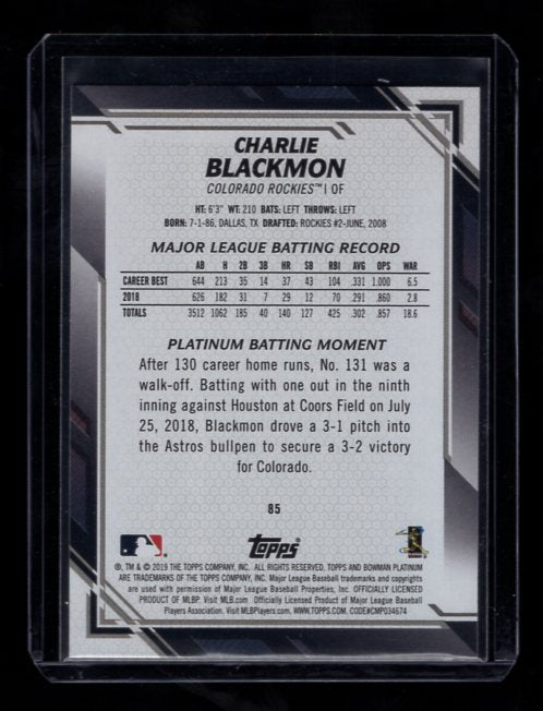 2019 Bowman Platinum #85 Charlie Blackmon (Colorado Rockies)