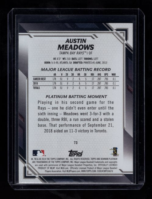 2019 Bowman Platinum #73 Austin Meadows (Tampa Bay Rays)