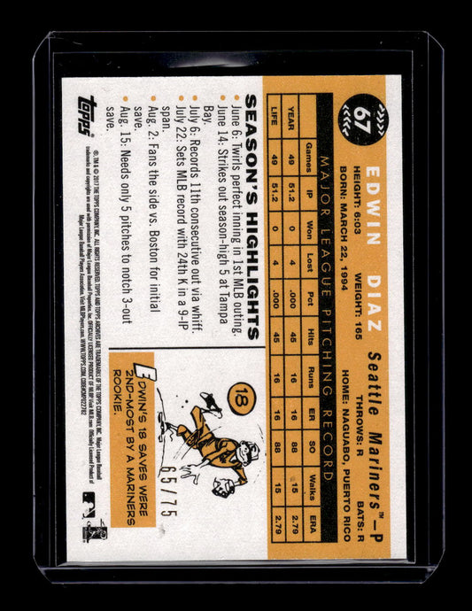 2017 Topps Archives Blue #67 Edwin Diaz #'d /75 (Seattle Mariners)