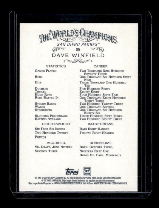 2017 Topps Allen and Ginter #85 Dave Winfield (San Diego Padres)