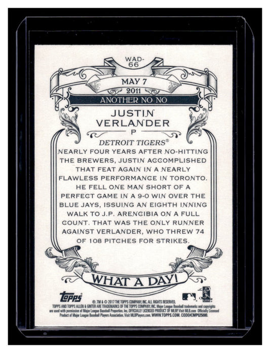 2017 Topps Allen & Ginter "What a Day!" #WAD-66 Justin Verlander (Detroit Tigers)