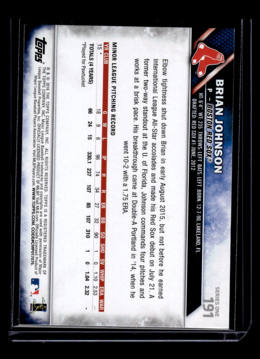 2016 Topps #191 Brian Johnson RC Rookie (Boston Red Sox)