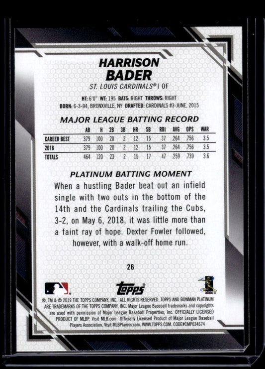2019 Bowman Platinum #26 Harrison Bader (St. Louis Cardinals)