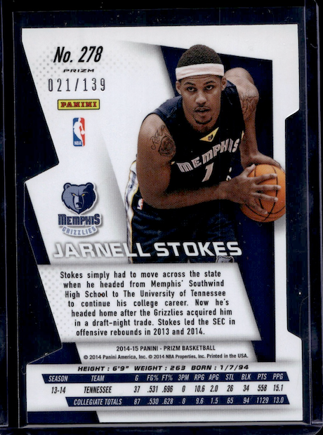 2014-15 Panini Prizm Prizms Purple Die Cut #278 Jarnell Stokes #'d 021/139 (Memphis Grizzlies)