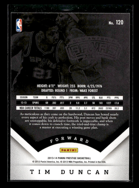2013-14 Prestige #120 Tim Duncan (San Antonio Spurs)