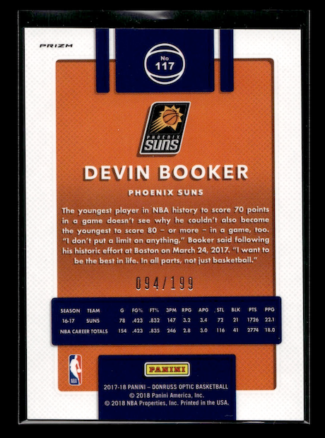 2017-18 Donruss Optic Orange #117 Devin Booker #'d 094/199 (Phoenix Suns)