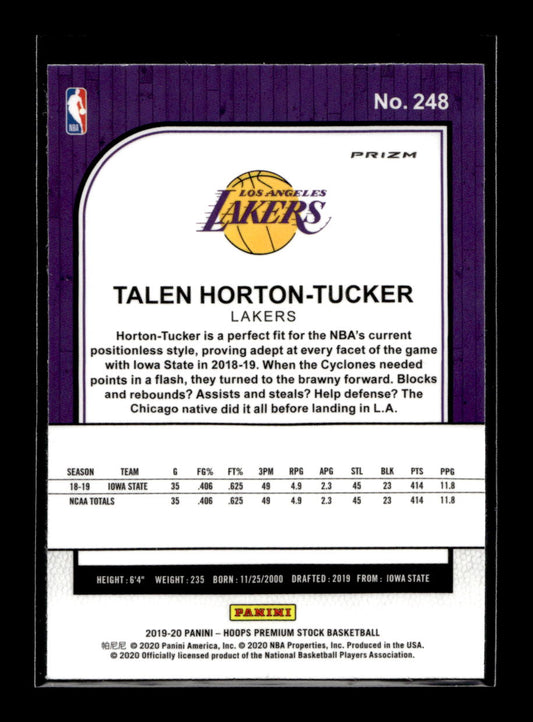 2019-20 Hoops Premium Stock Prizms Blue Cracked Ice #248 Talen Horton-Tucker (Los Angeles Lakers)