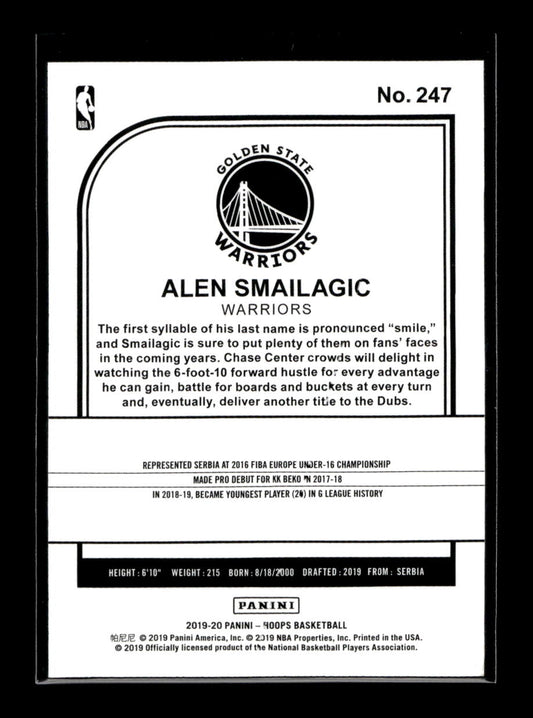 2019-20 Hoops Silver #247 Alen Smailagic Rookie #'d /199 (Golden State Warriors)