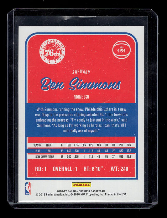 2016-17 Donruss #151 Ben Simmons Rookie RC (Philadelphia 76ers)