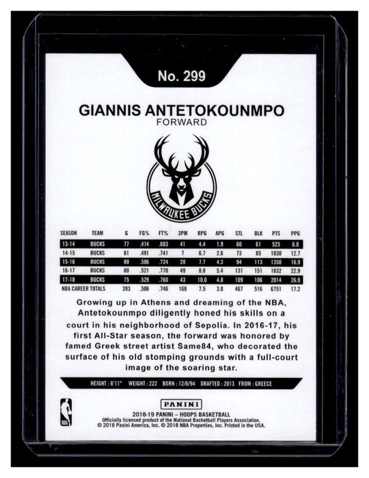 2018-19 NBA Hoops #299 Giannis Antetokounmpo (Milwaukee Bucks)