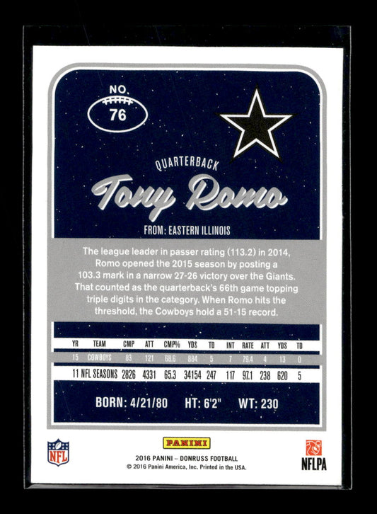 2016 Donruss #76 Tony Romo (Dallas Cowboys)
