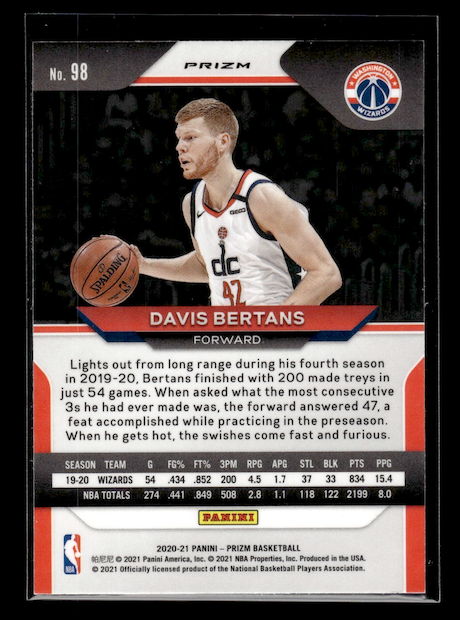 2020-21 Panini Prizm Prizms Pink Ice #98 Davis Bertans (Washington Wizards)