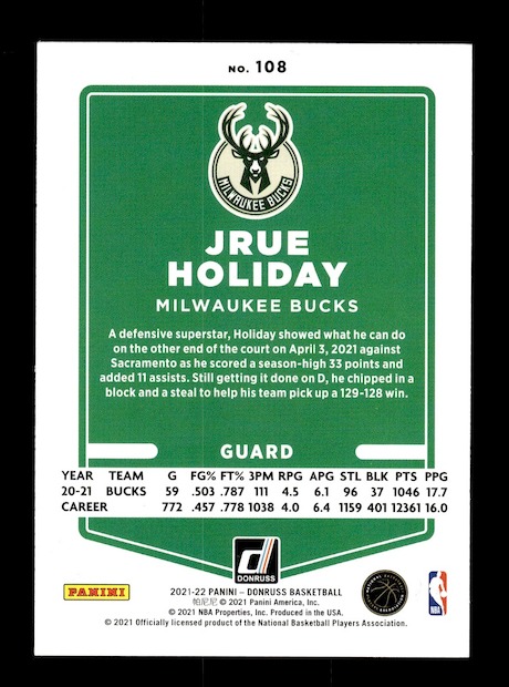 2021-22 Donruss #108 Jrue Holiday (Milwaukee Bucks)