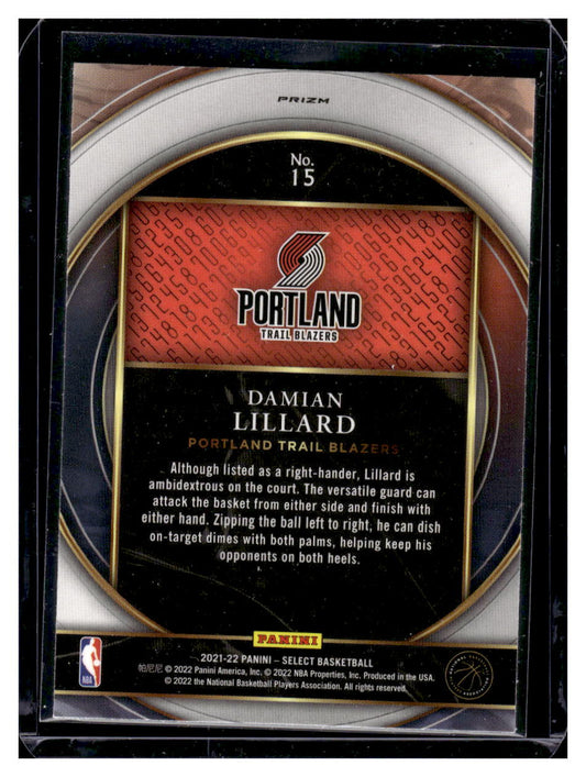 2021-22 Panini Select "Select Numbers" #15 Damian Lillard Red Prizms (Portland Trailblazers)