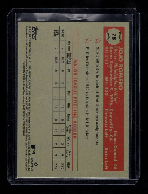 2021 Topps Chrome Platinum Anniversary #78 JoJo Romero Rookie (Philadelphia Phillies)
