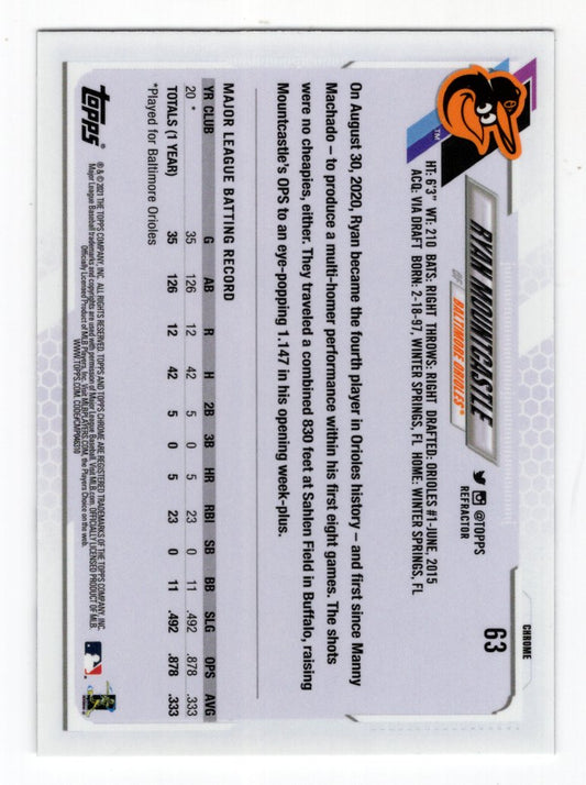 2021 Topps Chrome Ryan Mountcastle Rookie RC Refractor #63 (Orioles)
