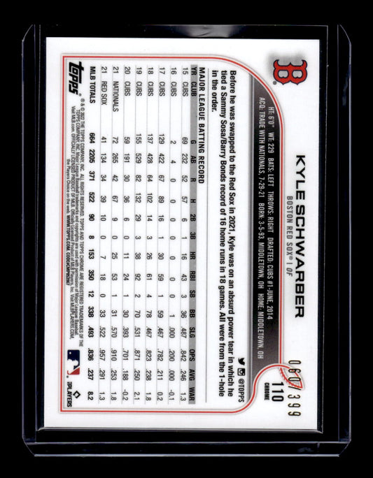2022 Topps Chrome "Pink Refractor" #110 Kyle Schwarber (Boston Red Sox)