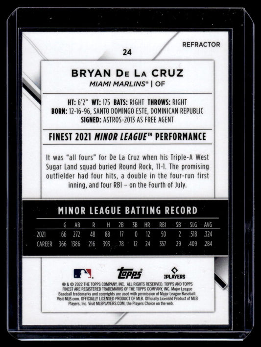 2022 Finest #24 Bryan De La Cruz Refractor (MIami Marlins)