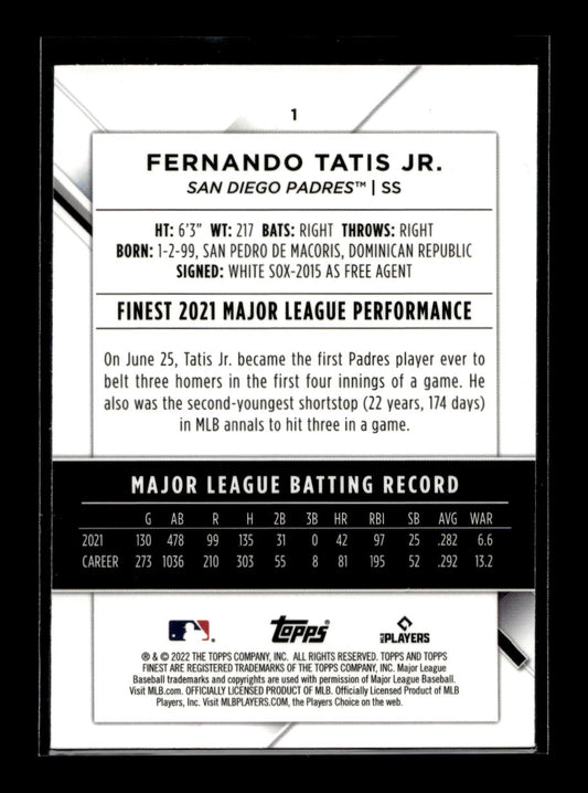 2022 Finest #1 Fernando Tatis Jr. (San Diego Padres)