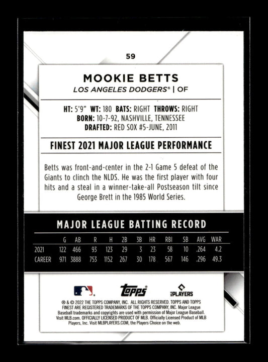 2022 Finest #59 Mookie Betts (Los Angeles Dodgers)